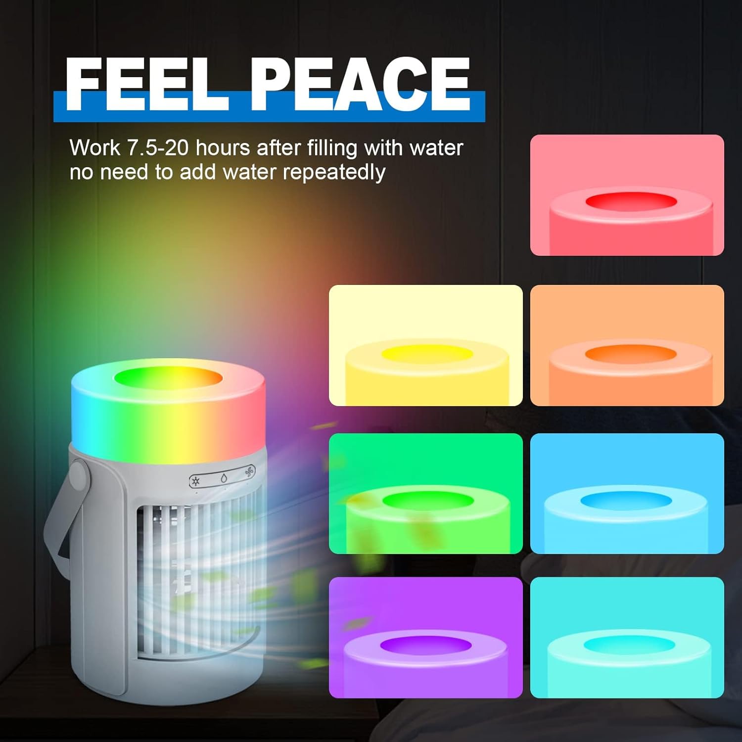 【7 Color Night Light】: You can set room cooler to an automatic colour cycle, or you can fix the colour you like.