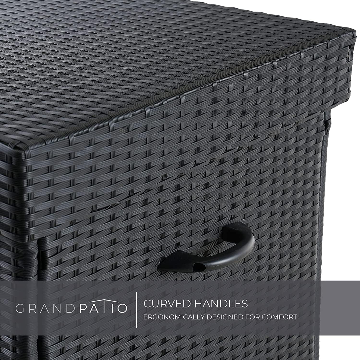 678 L capacity wicker deck box provides ample storage space for your stuff like gardening tools, cushions, toys, or pool equipment.- Black