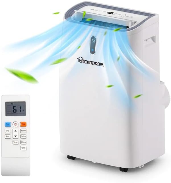 The HomeTronix Portable 14000 BTU Air Conditioner has powerful cooling capacity which instantly chills rooms up to 400 sq ft, combining AC, fan, and dehumidifier functions in one unit. Control it effortlessly via Wi-Fi or remote from your smartphone, while the LED display keeps you informed of the temperature. Easy to install with mobility-enhancing features, this compact unit fits sliding windows without drilling. Enjoy the 24-hour timer for scheduled cooling and sleep mode for quiet nights. Stay cool and comfortable with the HomeTronix Portable Air Conditioner, where convenience meets refreshment.