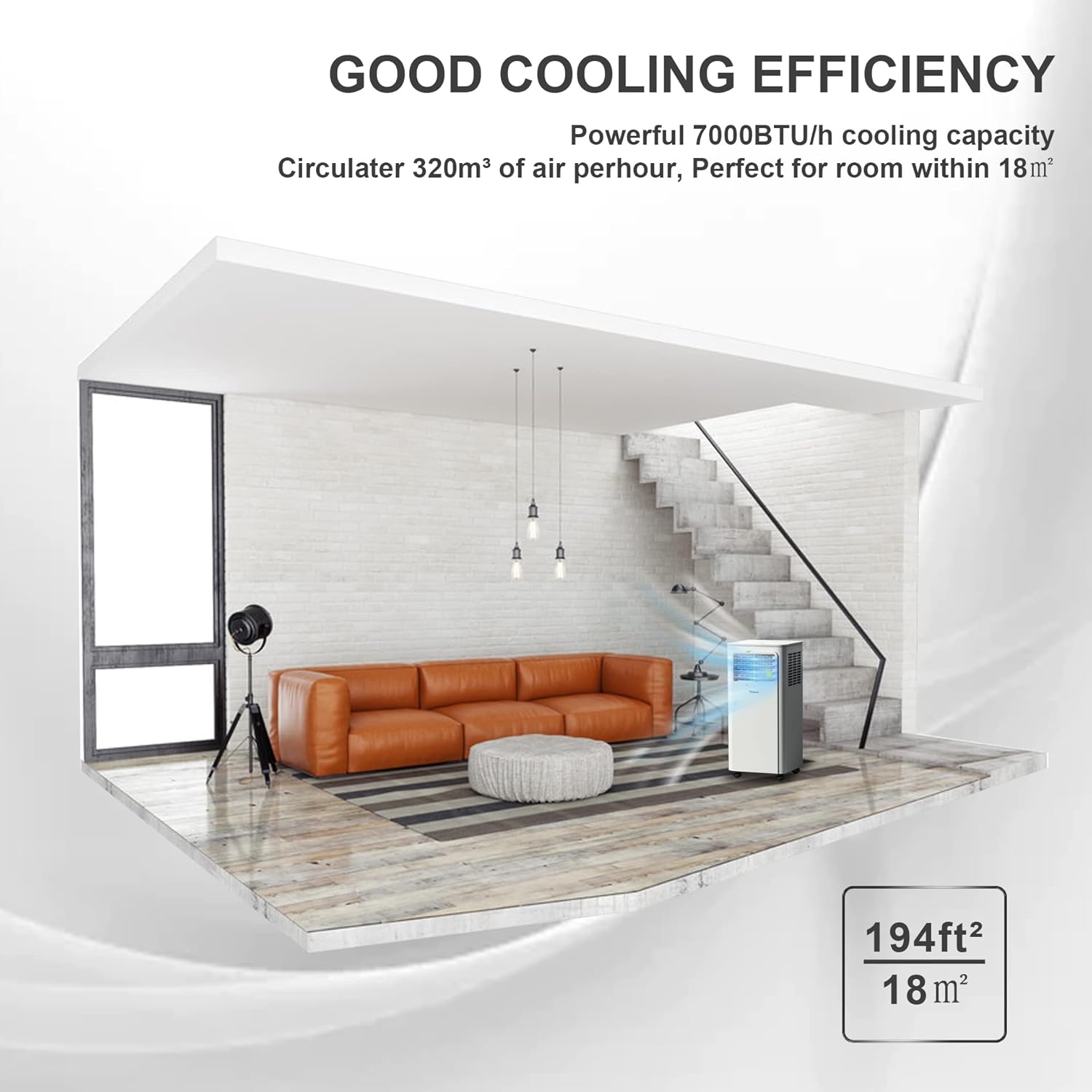 ✅【EASY-COOL】- 7000btu cooling capacity, cooling for spaces up to 18㎡ in Home, Bedroom, dorms, apartments, cabins, offices, bedrooms or living rooms. When the room is cool, switch to the low speed level,this air conditioner will become quiet(Noise ≤58dB), then maintain the temperature while you are sleeping.